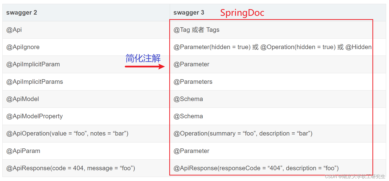 相对于SpringFox,SpringDoc提供了更简洁、直观的注解方式